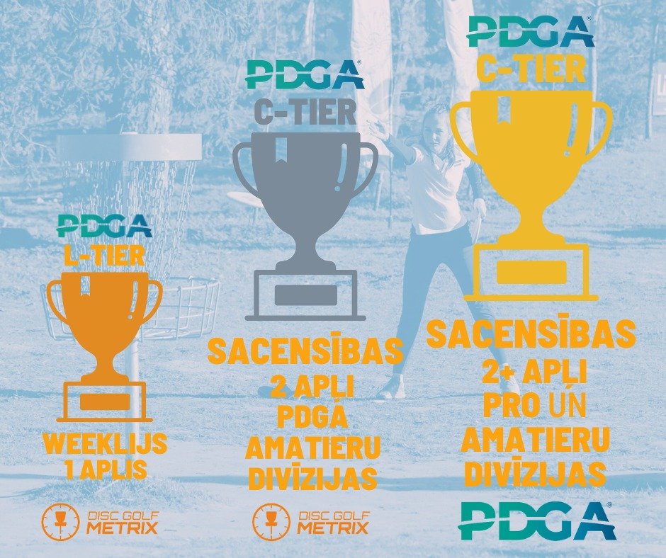 - Latvijā rīkoto PDGA-C līmeņa sacensību minimālais izspēlējamo grozu skaits ir 36 (18x2).